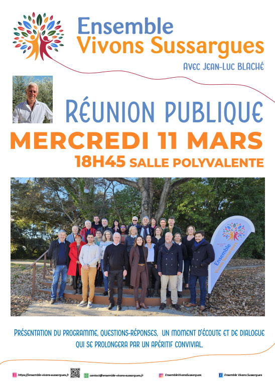 Enrichi de toutes ces expériences, j‘ai rassemblé une équipe qui, à mes côtés, aura à cœur de continuer à défendre les intérêts de toutes les Sussarguoises et de tous les Sussarguois.Constituée de plusieurs conseillers municipaux issus de l’équipe actuelle, mais aussi d’hommes et de femmes profondément attachés à leur village, elle sera résolument tournée vers une écoute attentive de toutes les générations, pour répondre à vos attentes.