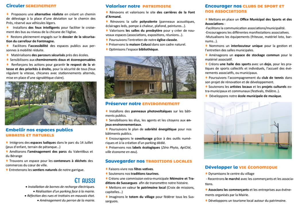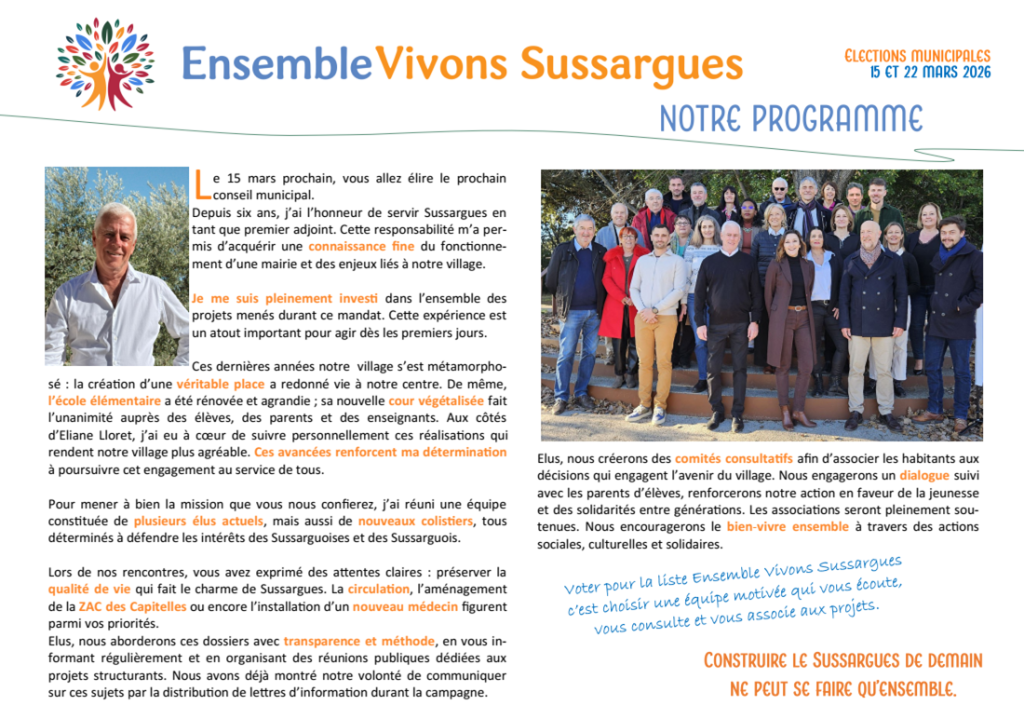 Voici programme d’Ensemble Vivons Sussargues :